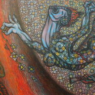 «L’organizzazione rappresentativa risente di questa situazione per la quale si assiste a un flusso continuo di energie autorigeneranti dove appare verificabile l’incessante succedersi della trasmutazione formale e cromatica. Le polarità distruttive e quelle costruttive, anziché frammentare l’oggetto espressivo lo accorpano giungendo a unificare l’intreccio delle linee rotte e delle spirali e lo spogliano di ogni descrittività. Le tonalità cupe del colore delineano una sorta di percorso di natura iniziatica, dove gli opposti si confondono consentendo un doppio livello di lettura quello per i profani e quello per chi ha una seconda vista».